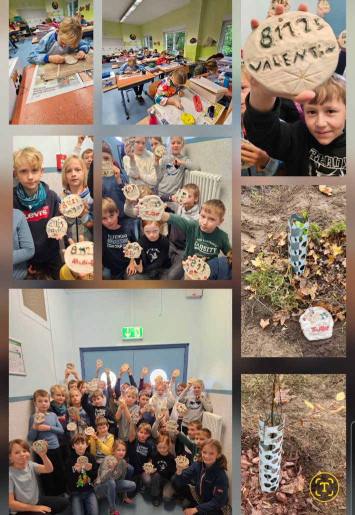 Die Bäume wurden mit im Kunstunterricht angefertigten Keramiken (Reliefs) gekennzeichnet. So können wir nachverfolgen, wann und von wem ein Baum gepflanzt wurde.
